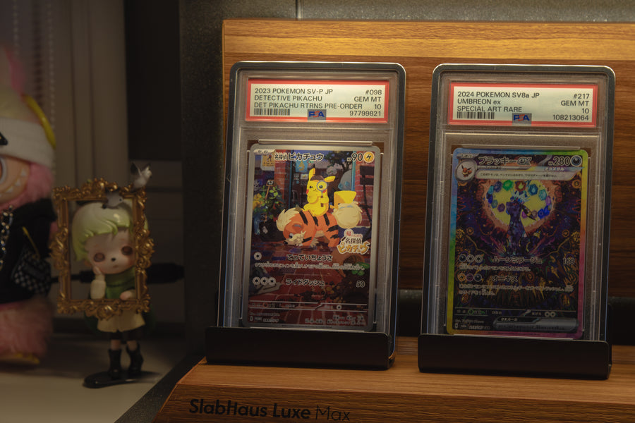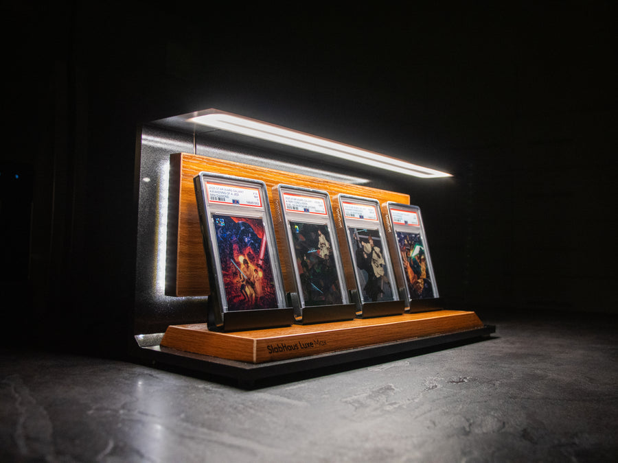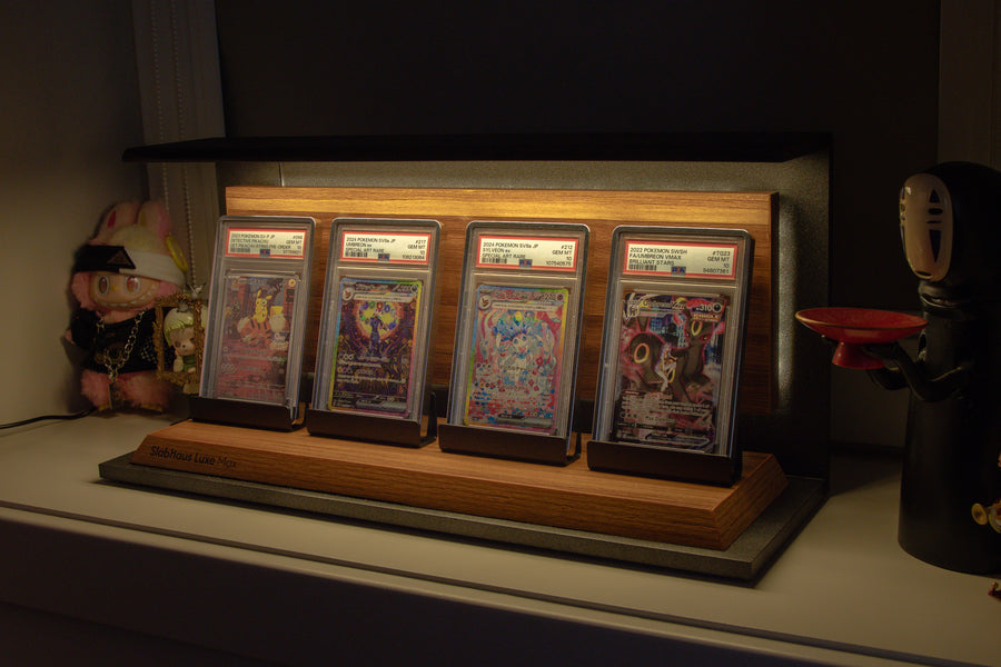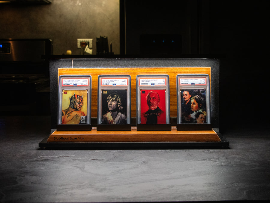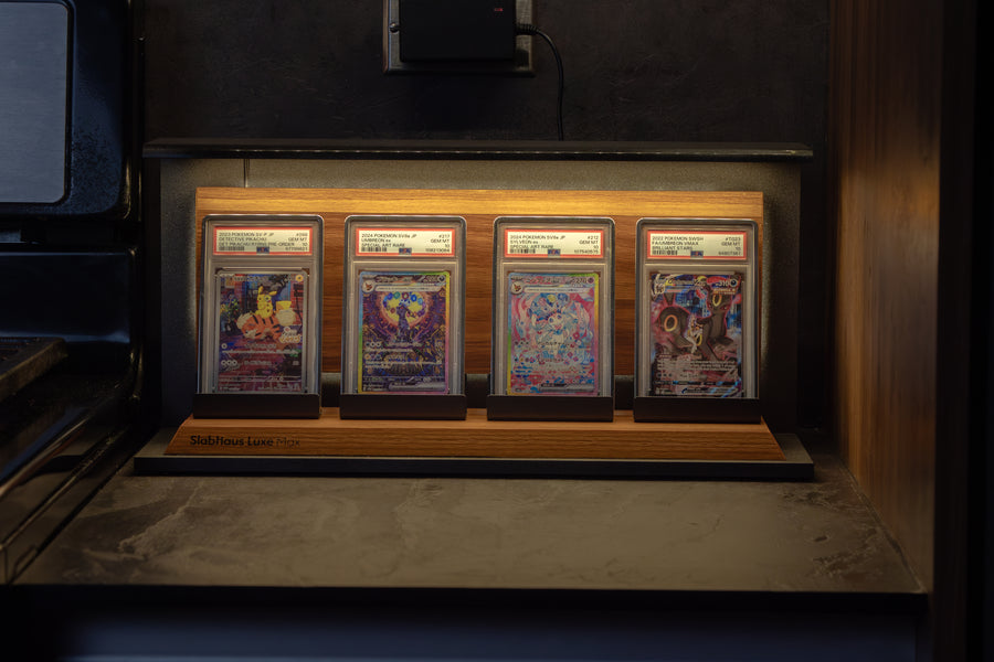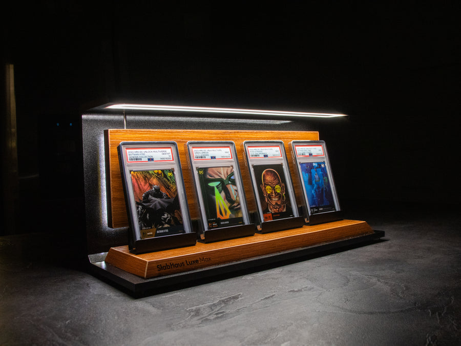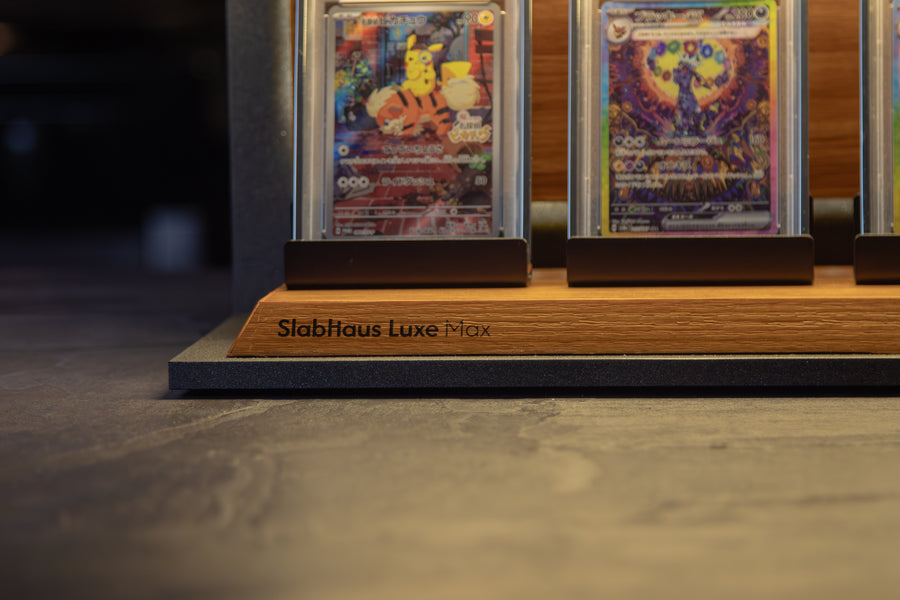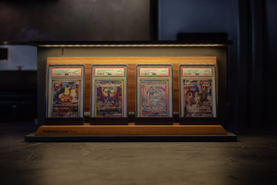 The SlabHaus Luxe Max Display is the pinnacle of premium presentation. Designed for serious collectors, it features a sleek, minimalist aesthetic that enhances rather than distracts from your slabs.